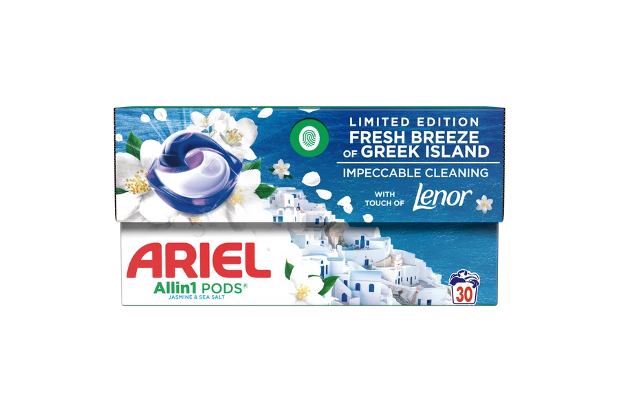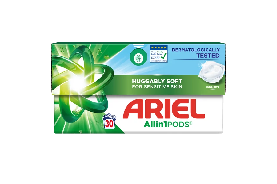 Az innovatív csomagolás kapszula formában teljesen feloldódik a vízzel való érintkezéskor. Ezzel feloldódnak a hatékony technológiák a különböző foltok eltávolítására, amit a folyékony Ariel formula biztosít a megfelelő mennyiségű mosó és tisztító szerekkel.